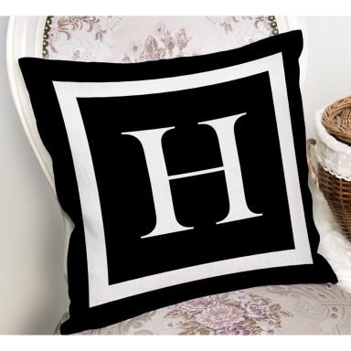 Siyah Zemin Beyaz Çerçeveli H Harfi Dijital Baskılı Kırlent Kılıfı