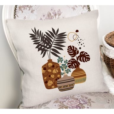 Kavanozdaki Tropik Yapraklar Dijital Baskılı Yastık Kırlent Kılıfı