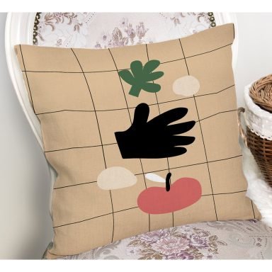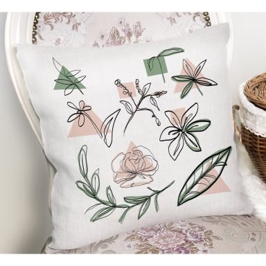 Oneline Gül & Yaprak Çizimli Dijital Baskılı Yastık Kırlent Kılıfı