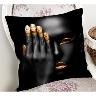Gold Detaylı Siyahi Kadın Tasarımlı Dekoratif Yastık Kırlent Kılıfı