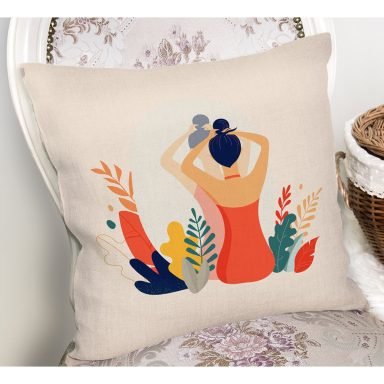Çiçek Tasarımlı Kadın Figürlü Dekoratif Yastık Kırlent Kılıfı