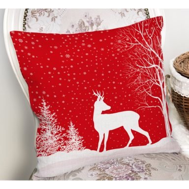 Kırmızı Yılbaşı Temalı Yeyik Tasarımlı Yastık Kırlent Kılıfı