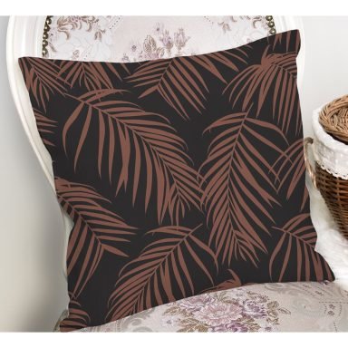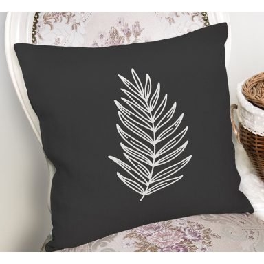 Siyah Zemin Yaprak Çizimli Dijital Baskılı Yastık Kırlent Kılıfı
