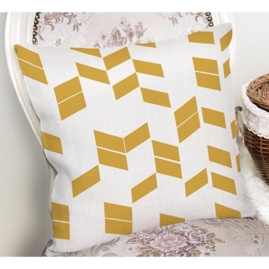 Beyaz Zemin Onedraw Geometrik Çizimli Yaprak Motifli Kırlent Kılıfı