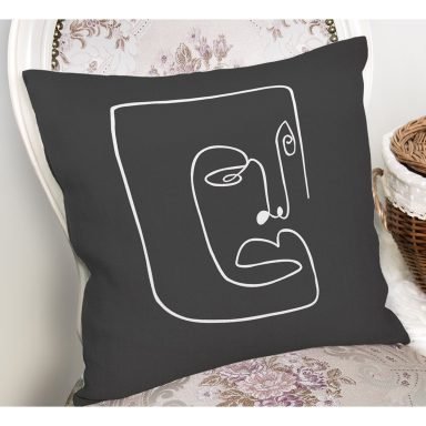 Koyu Gri One Line Çizimli Dijital Baskılı Yastık Kırlent Kılıfı