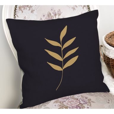 Gold Detaylı Yaprak Motifli Özel Tasarım Dekoratif Yastık Kırlent Kılıfı