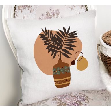 Tropik Yaprak Vazo Temalı Dijital Baskılı Yastık Kırlent Kılıfı