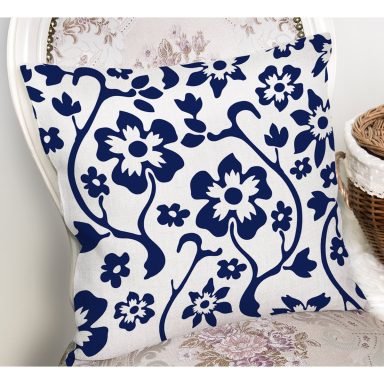 Beyaz Zemin Lacivert Gül Motifli Dekoratik Yastık Kırlent Kılıfı
