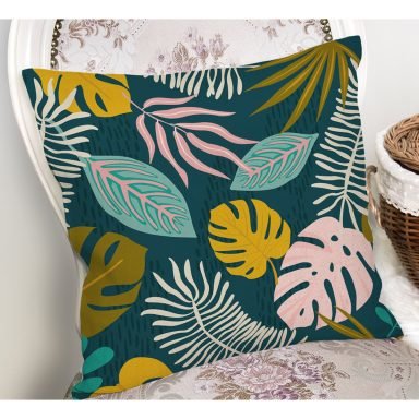 Renkli Tropik Yaprak Temalı Dijital Baskılı Yastık Kırlent Kılıfı