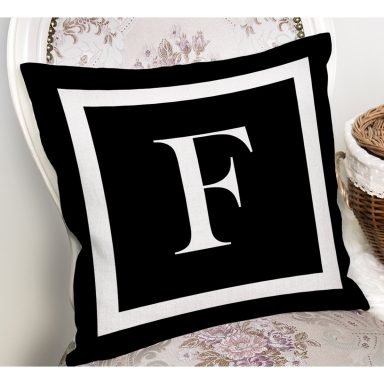 Siyah Zemin Beyaz Çerçeveli F Harfi Dijital Baskılı Kırlent Kılıfı