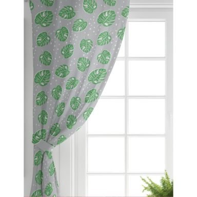 Realhomes Gri Zeminde Yapraklar Dijital Baskılı Modern Fon Perde