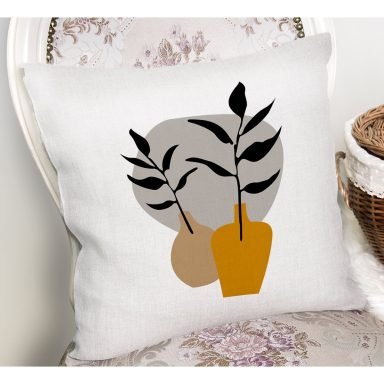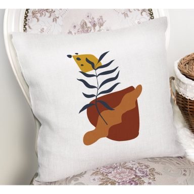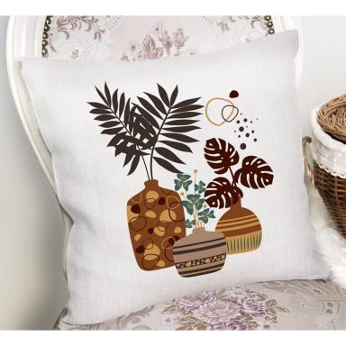 Kavanozdaki Tropik Yapraklar Dijital Baskılı Yastık Kırlent Kılıfı
