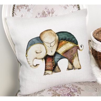 Etnik Tasarımlı Fil Desenli Dijital Baskılı Yastık Kırlent Kılıfı
