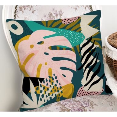 Özel Tasarımlı Tropik Yaprakları Dijital Baskılı Yastık Kırlent Kılıfı