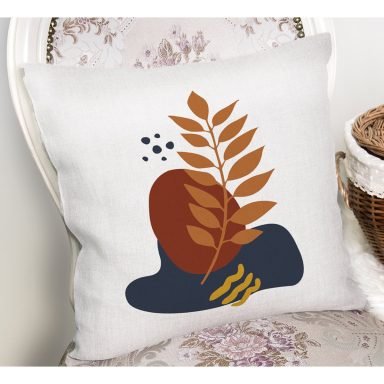 Beyaz Zemin Tekli Tropik Yaprak Çizimli Yastık Kırlent Kılıfı