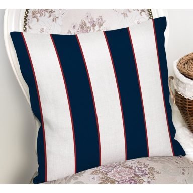 Kırmızı Detaylı Lacivert Beyaz Çizgili Yastık Kırlent Kılıfı