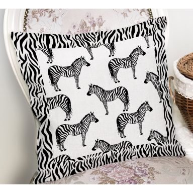 Zebra Çerçeveli Zebra Desenli Dijital Baskılı Dekoratif Kırlent Kılıfı