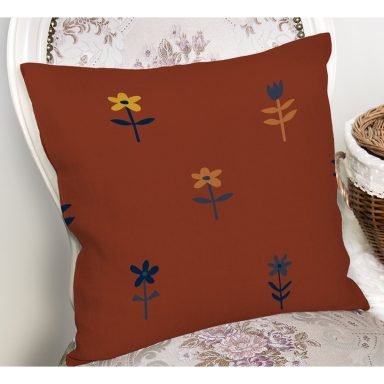 Kahve Zemin Çiçek Figürlü Özel Tasarım Yastık Kırlent Kılıfı