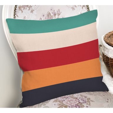 Renkli Düz Çizgili Dijital Baskılı Dekoratif Yastık Kırlent Kılıfı