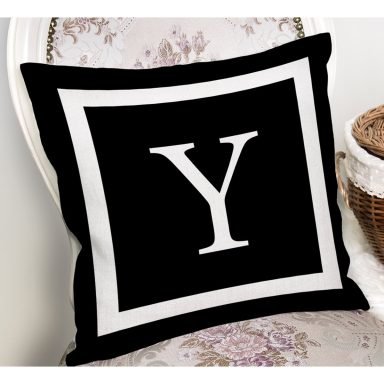 Siyah Zemin Beyaz Çerçeveli Y Harfi Dijital Baskılı Kırlent Kılıfı