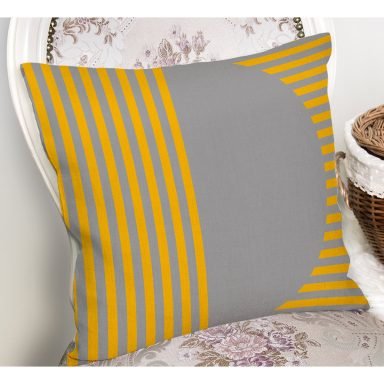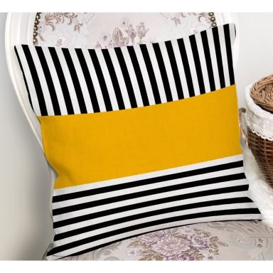 Sarı Zemin Siyah Çizgili Dijital Baskılı Modern Yastık Kırlent Kılıfı
