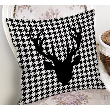Kazayağı Zemin Geyik Tasarımlı Dekoratif Yastık Kırlent Kılıfı