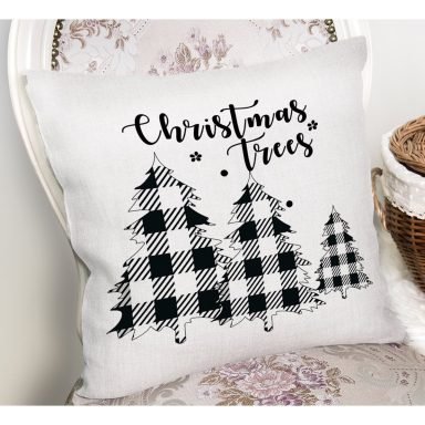 Christmas Temalı Ekose Çam Ağacı Motifli Yastık Kırlent Kılıfı