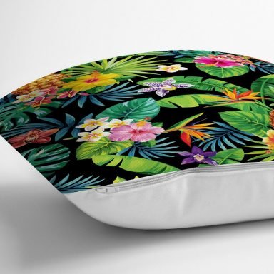 Suluboya Tropikal Yapraklar Desenli Özel Tasarım Yastık Kırlent Kılıfı