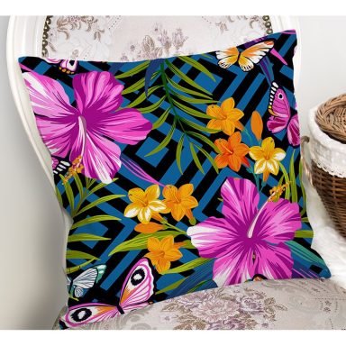 Zigzag ve Çiçekler Özel Tasarım Dekoratif Yastık Kırlent Kılıfı