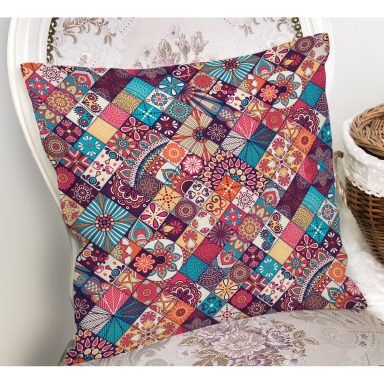 Geometrik Zeminde Çiçek ve Kaktüsler Özel Tasarım Yastık Kırlent Kılıfı