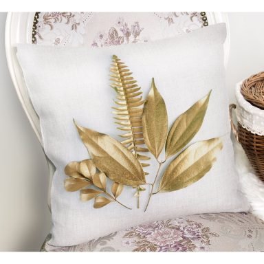 Altın Detaylı 3D Yaprak Desenli Modern Yastık Kırlent Kılıfı