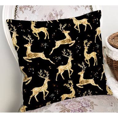 Siyah Zeminde Gold Geometrik Desenli Dekoratif Yastık Kırlent Kılıfı