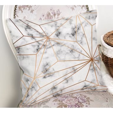 Mermer Zeminde Altın Geometrik Şekiller Özel Tasarımlı Yastık Kırlent Kılıfı