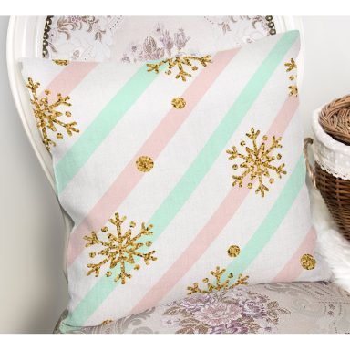 Pembe Mavi Zeminde Kar Tanesi Detaylı Modern Yastık Kırlent Kılıfı