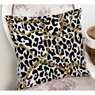 Leopar Desenli Altın Detaylı Özel Tasarım Modern Yastık Kırlent Kılıfı