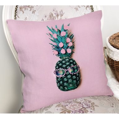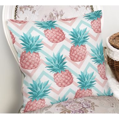 Fuşya Zeminde Ananas Desenli Modern Tasarım Yastık Kırlent Kılıfı