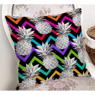 Siyah Zigzag Temalı Ananas Desenli Modern Yastık Kırlent Kılıfı