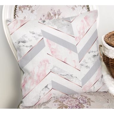 Pembe Zigzag Desenli Altın Detaylı Modern Yastık Kırlent Kılıfı
