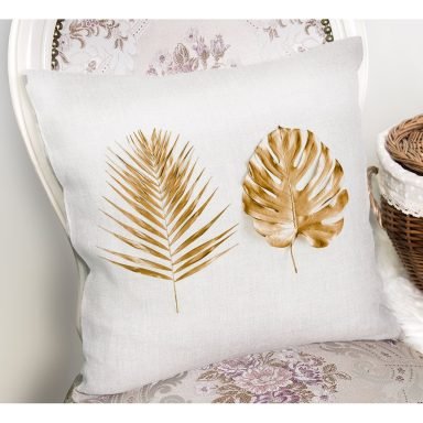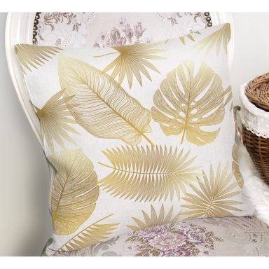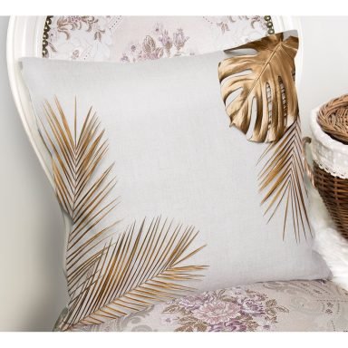 Altın Renkli Palmiye Yaprakları Dijital Baskılı Yastık Kırlent Kılıfı