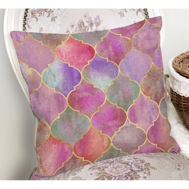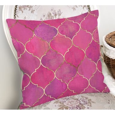 Pembe Altın Varaklı Ogea Desenli Dekoratif Yastık Kırlent Kılıfı