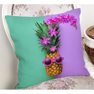 Yeşil ve Mor Ananas Temalı Özel Tasarım Yastık Kırlent Kılıfı