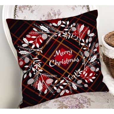 Ekose Merry Christmas Desenli Dijital Baskılı Yastık Kırlent Kılıfı