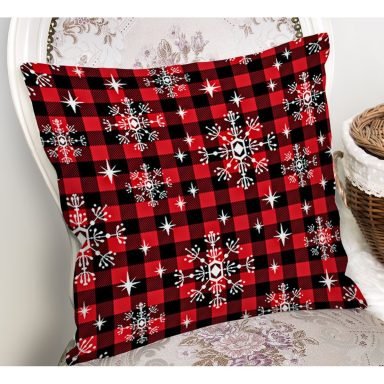 Siyah Kırmızı Ekose Desenli Yılbaşı Temalı Dekoratif Yastık Kırlent Kılıfı