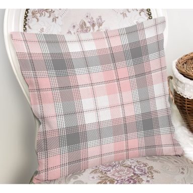 Pembe Lacivert Ekose Desenli Dekoratif Yastık Kırlent Kılıfı
