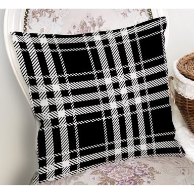 Siyah Zeminli Ekose Desenli Dijital Baskılı Dekoratif Yastık Kırlent Kılıfı