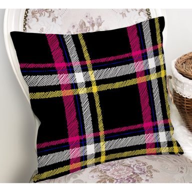 Siyah Sarı Pembe Ekose Desenli Dijital Baskılı Dekoratif Yastık Kırlent Kılıfı