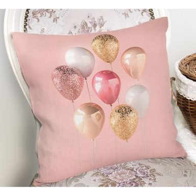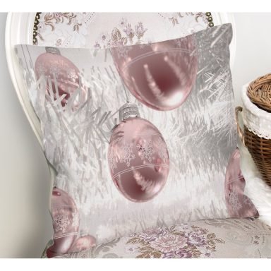 Pembe Zeminli Yılbaşı Konseptli Desenli Yastık Kırlent Kılıfı
