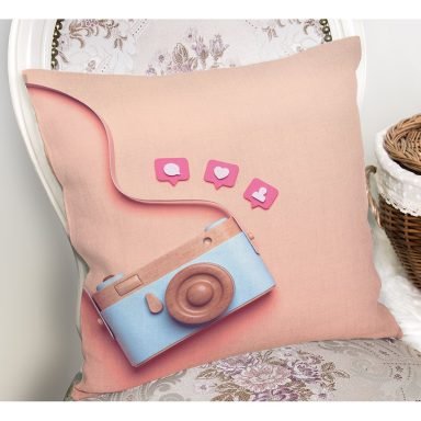 3D Instagram Fotoğraf Makinası Desenli Dijital Baskılı Yastık Kırlent Kılıfı
