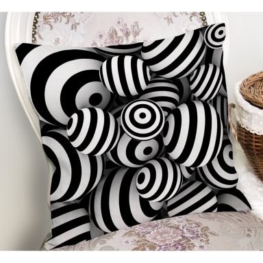 Siyah Beyaz 3 Boyutlu Küreler Dijital Baskılı Yastık Kırlent Kılıfı