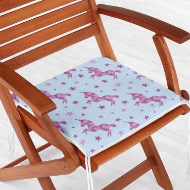 Realhomes Mavi Zeminde Pembe Yıldız Dijital Baskılı Modern Sandalye Minderi